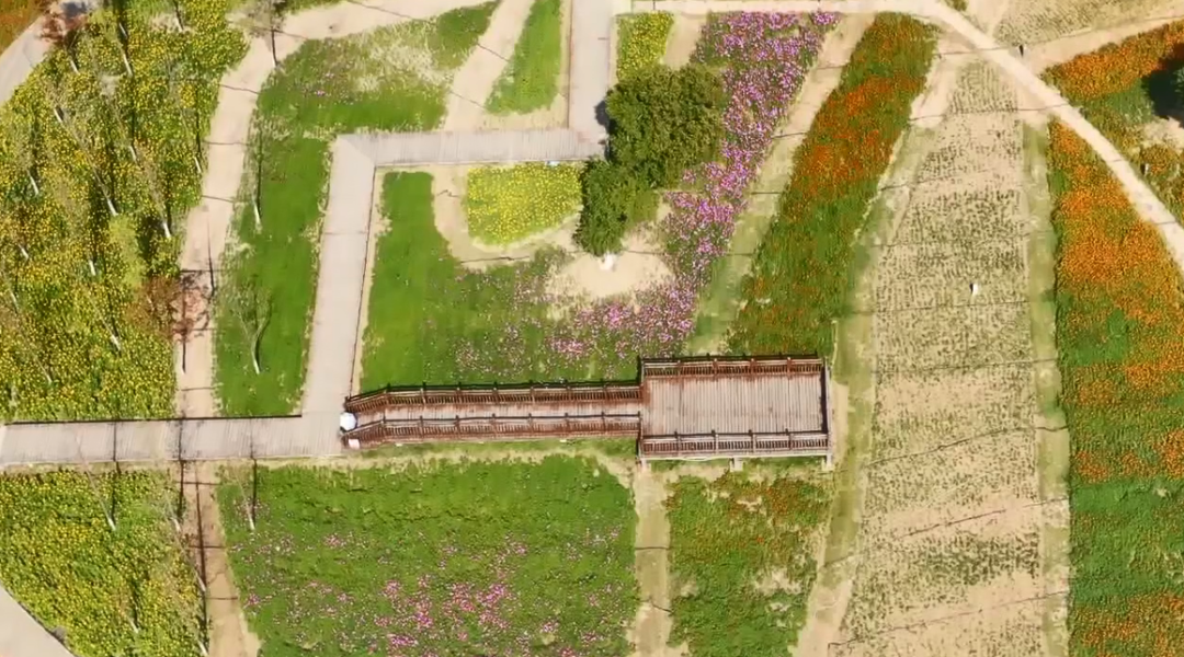 而此前这里是堆放建筑材料的工地,现在开发成一眼望不到头花海,种植了接近100亩的各种花卉,目前已营造出七彩花海的浪漫景观。
