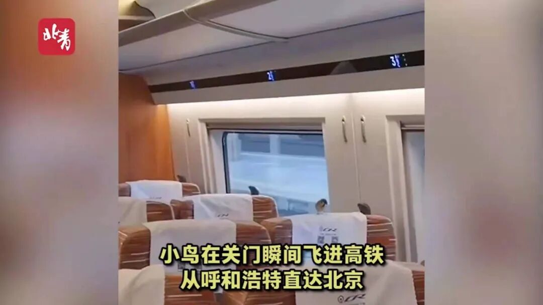 近日,G2432次列车即将关门之前,一只小麻雀飞进车厢,从呼和浩特坐到北京,全程2小时12分。