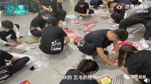最近,河南周口某4S店内众多工作人员蹲地上数硬币的视频走红。