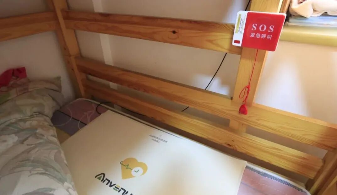 老人床上安装智能床垫和紧急呼叫器。(图片来源:长江日报)