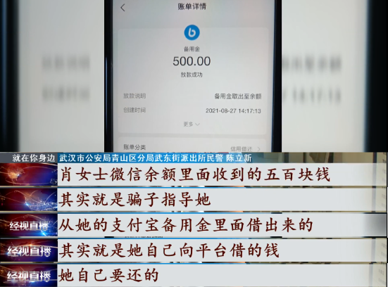 收到了钱,肖女士打算继续按“客服”的要求,向指定账户转5000元保证金。刚好民警上门,让她停止了转账操作。既然客服是骗子假扮的,那为什么还会给肖女士先转来500元钱呢?经过一番调查,民警终于弄清了这笔钱的来源。