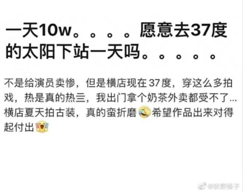 话说回来,每天有多少室外劳动者,不是在烈日下晒着?比起工人、外卖员、环卫工......一天拿着10万的演员有什么可卖惨的??!!