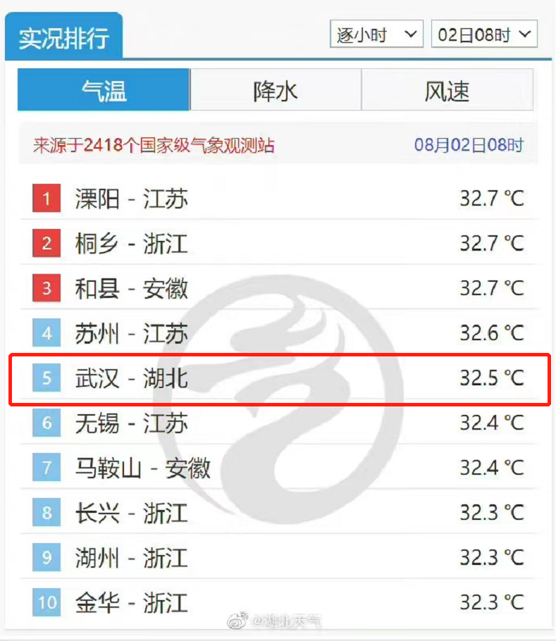 1日武汉晴天,最低气温25.6℃,最高气温36.5℃。今天早晨武汉市晴天,最低气温26.6℃。