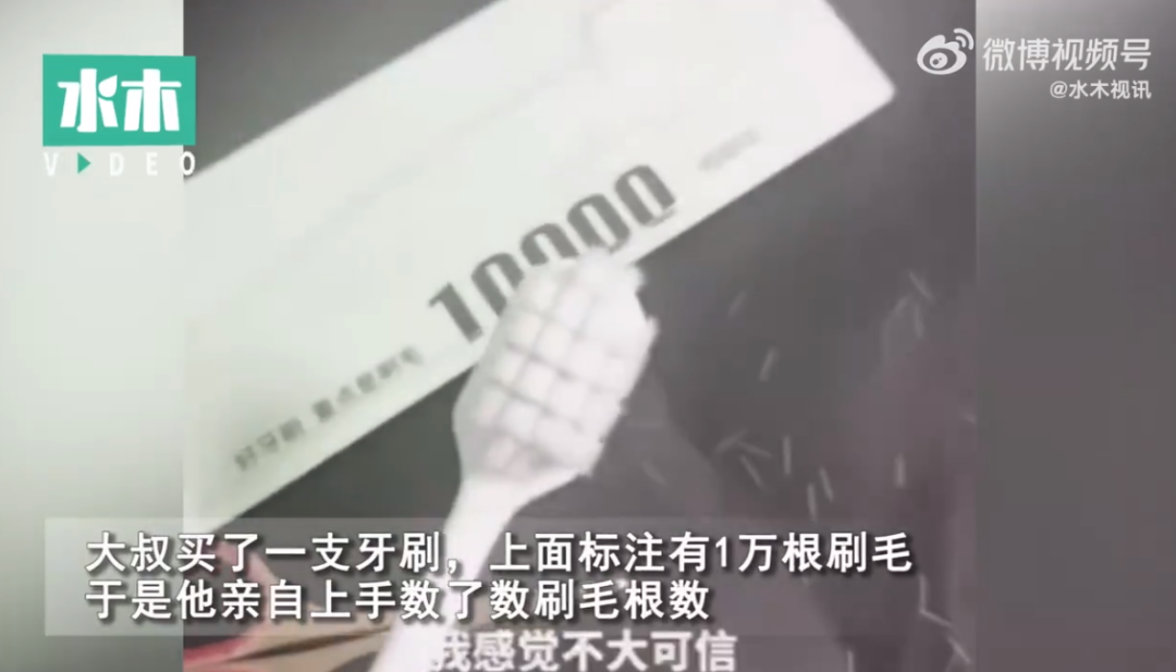 近日,有位大叔买了一支牙刷,上面标注有1万根刷毛,于是他亲自上手数了数刷毛根数。