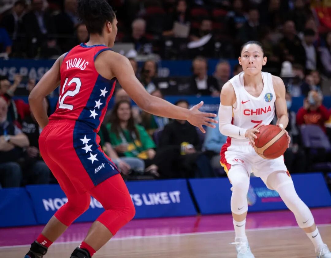 第二节,中国女篮加强了防守,美国队陷入得分困难。不过该队马上以一个三分球予以回应,并连续投篮命中,中国女篮落后8分。在此之后,中国女篮奋力追赶,武桐桐、韩旭均有不错的发挥,但仍然挡不住美国队的进攻,比分来到43:33。