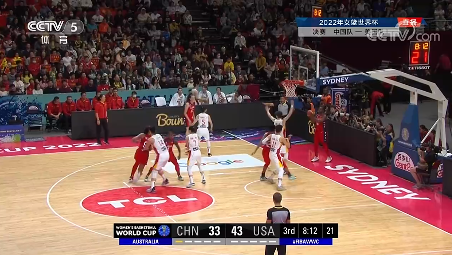 第三节,47:68,中国女篮落后21分。第四节,中国女篮没有放弃,拼搏到最后一秒。