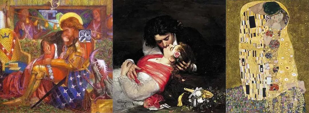 一些以吻为主题的名画中,人物也都是闭着眼的。无他,防眼晕尔。