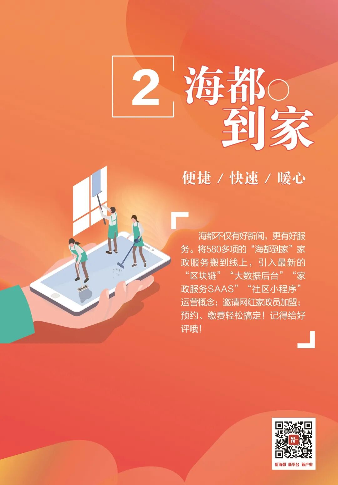 APP开设“海都播报”、“海都到家”、“海都商城”、“海都教育”、“海都民声”、“海都正榜”六大板块。实现新闻资讯、生活服务、智库服务等“交互生态圈”。