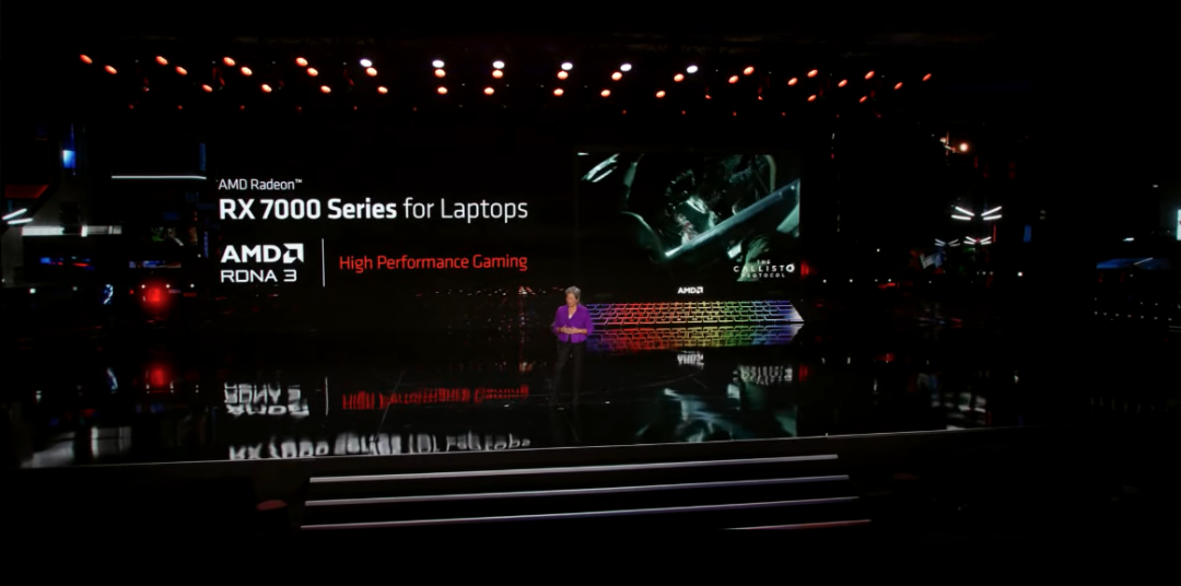 在本次发布会上,还有一大看点,就是 AMD 宣布了全新面向笔记本平台的 RDNA 3 架构移动版显卡。RDNA 3 移动版显卡拥有强大的能效表现,支持最先进的视频、存储特性,以及集成 RT+AI 加速器的统一 RDNA 3 架构。