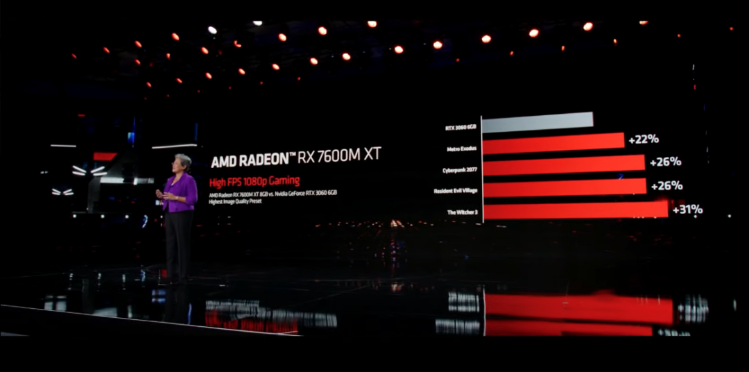 在高帧率 1080p 游戏场景中,Radeon RX 7600M XT 8GB 显卡相比 Radeon RX 6600M 8GB 有显著的性能提升,比如《生化危机:村庄》中,帧率可以达到 176fps,相比 RX 6600M 提升达 23%,而在控制 (Control) 游戏中提升更是高达 39%。