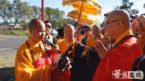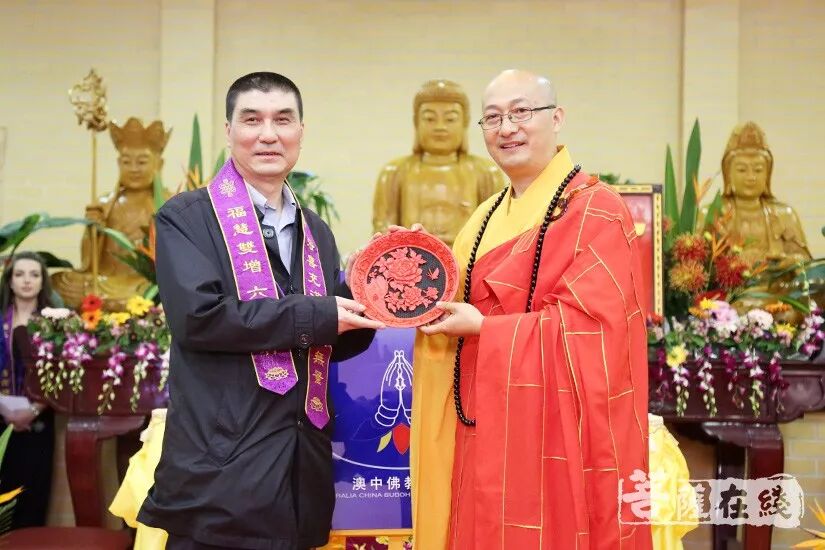 普正大和尚受学诚大和尚委托,代表中国佛教协会,对般若法师荣膺澳大利亚悉尼楞严寺方丈暨澳中佛教总会成立揭牌表示热烈祝贺,对与会大众致以真诚的祝福。