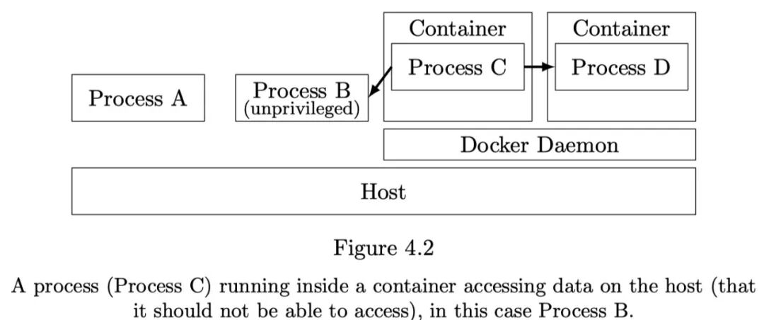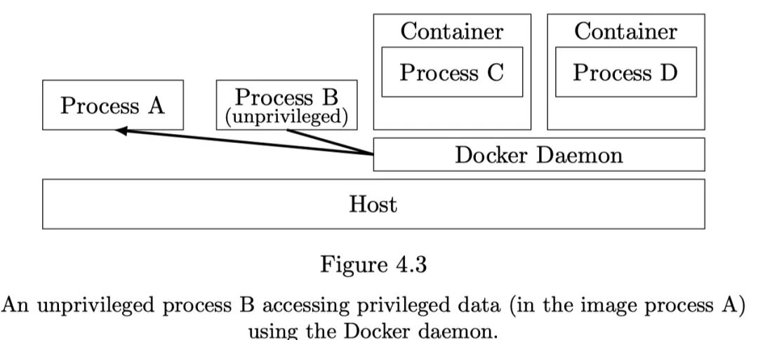 针对Docker守护进程的攻击则指宿主机上低权限攻击者借助Docker守护进程获取到敏感数据或更高权限,示意图如下: