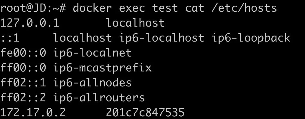 操作:有条件的话应该使用nmap探测。还可以先读取/etc/hosts查看容器的IP地址。例如: